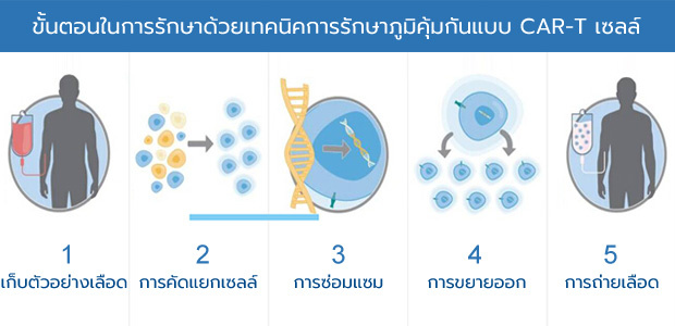 ขั้นตอนในการรักษาด้วยเทคนิคการรักษาภูมิคุ้มกันแบบ CAR-T เซลล์